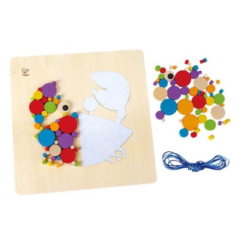 Мозайката е изработена от висококачествено дърво и е боядисана с безопасни бои на водна основа, които са нетоксични и подходящи за децата. Частите са здрави и устойчиви на многократна употреба, което осигурява дълготрайна творческа игра.