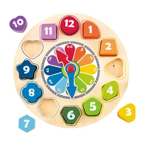 Всяка форма пасва само на своето място, което развива логическото мислене, фината моторика и координацията око-ръка. Подвижните стрелки позволяват на децата да упражняват различни часове и да се учат чрез игра.