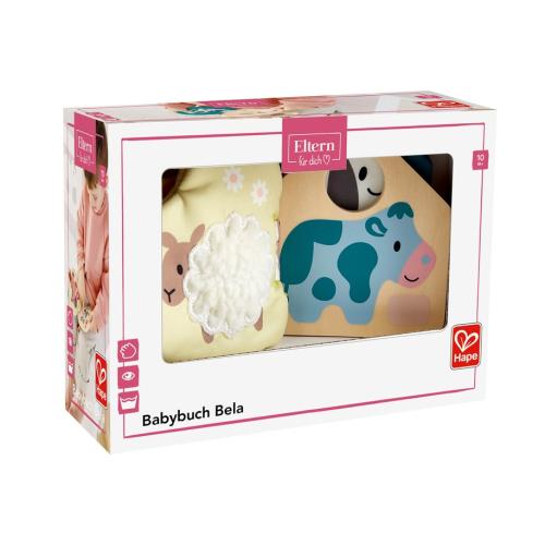 С бебешката книжка с текстури Hape, Бела, малките изследователи могат да откриват различни материали и текстури. Книжката комбинира дърво и плат, предлагайки интерактивно и безопасно преживяване за бебета.