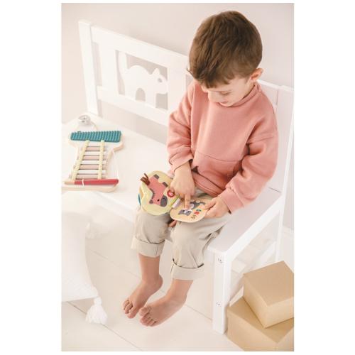Играта с книжката подпомага ранното сетивно развитие на бебето, стимулира любопитството и координацията между очи и ръце. Чрез взаимодействие с различни текстури и материали, малките изследователи учат за причинно-следствените връзки, развиват наблюдателност и започват да разпознават форми, цветове и звуци.