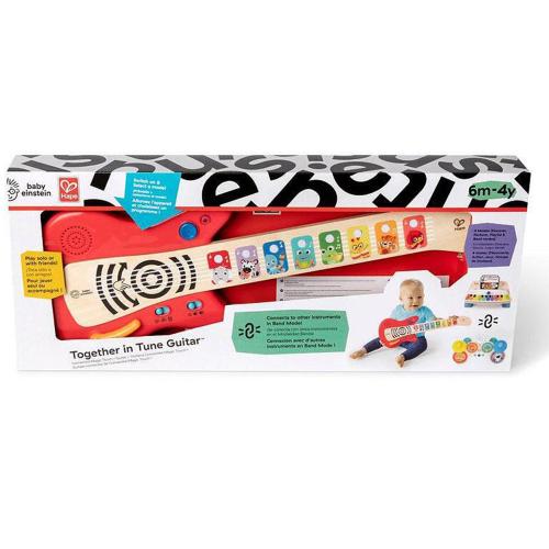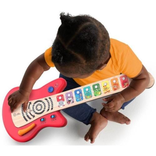 С дървената сензорна китара Hape, Baby Einstein, бебетата могат да се потопят в света на музиката и да създават свои първи мелодии. С деликатното докосване на пръстите си, малките музиканти могат да свирят без бутони или клавиши благодарение на технологията Magic Touch, която реагира на допир.
