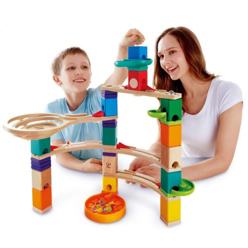 Тази дървена писта с топчета, Quadrilla Катерачът, е идеалният избор за малки строители и любители на предизвикателства, които искат да създават свои писти, да наблюдават движението на топчетата и да развиват инженерното си мислене чрез забавна и интерактивна игра, докато се учат на сътрудничество и експериментиране.