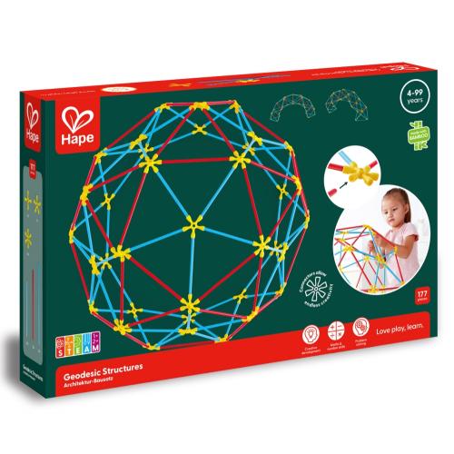 С бамбуковия конструктор Hape, Flexistix, Геодезически структури децата могат да изследват света на инженерството и архитектурата, като изграждат геодезичен купол, фермен мост и други сложни конструкции. Гъвкавите конектори и бамбуковите пръчки позволяват многократни комбинации, както за зададени модели, така и за собствено творчество.