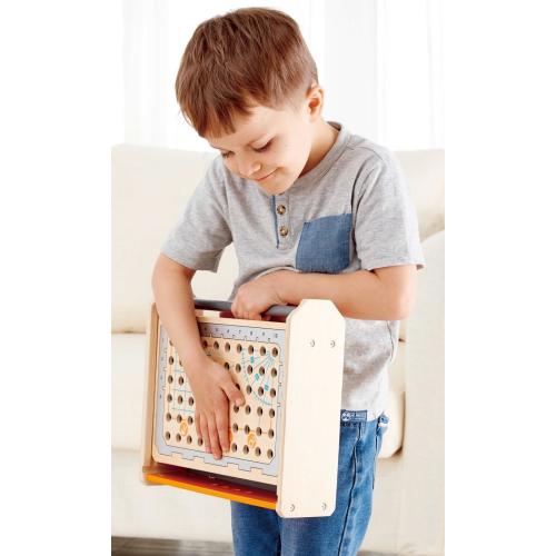 Детският дървен комплект за игра Hape, Млад изобретател, е идеален избор за малките откриватели, които обичат да конструират, да разбират как работят нещата и да развиват своето логическо мислене чрез игра.