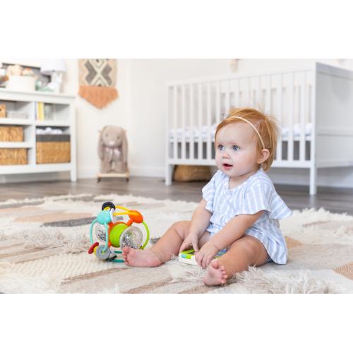 Тази топка за активност е много лесна за хващане, стискане и изследване от малките ръчички. В средата, прозрачната част ще внесе музикалност у вашето мъниче. Малките цветни мъниста издават приятен звук, привличат погледа и стимулират бебето.