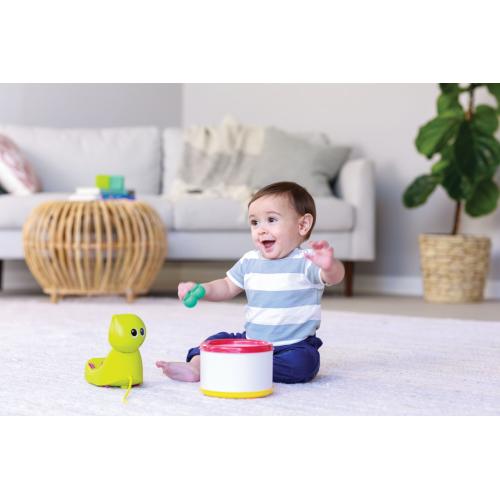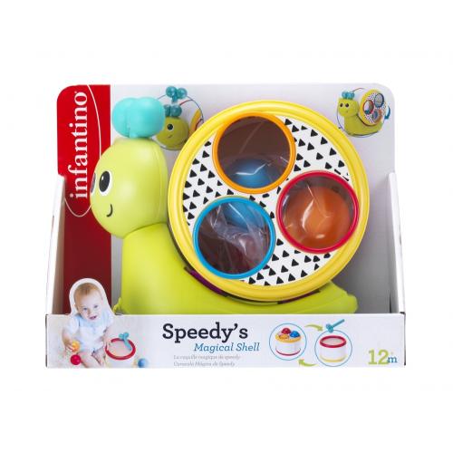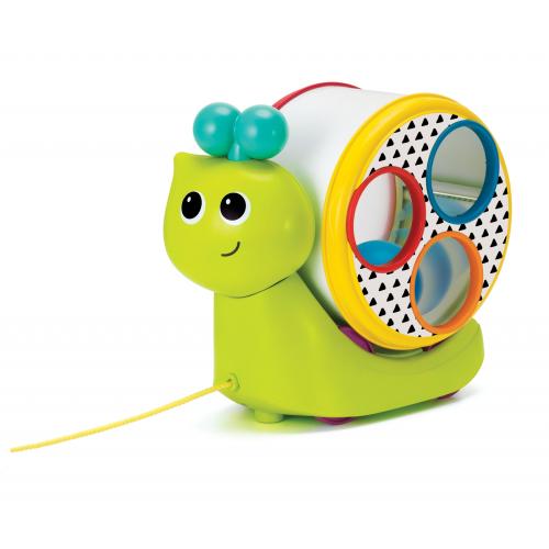 С тази играчка охлювче от Infantino може да се играе по много начини: можете да я дърпате, да поставяте топчета в черупката ѝ (сортиране по цветове) или да я разглобявате за още игра. Разглобената играчка се превръща в барабан, който помага за развитието на механичните умения и ръчната сръчност на вашето бебе.