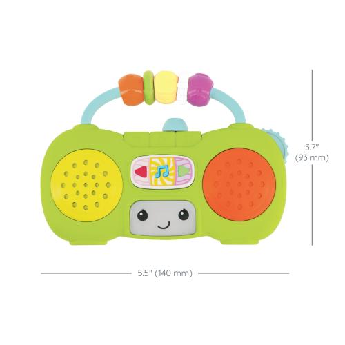 С този жизнерадостен касетофон, вашето бебе ще танцува на музика за нула време. С идеален размер за малки ръчички, този мини касетофон е пълен с функции, които ще забавляват бебето ви. Докато изследват медийния бутон, плъзгащия се превключвател и цветните въртящи се мъниста на касетофона, те ще развият фината си моторика, наслаждавайки се на жизнерадостните мелодии и мигащата светлина! Натискането на медийния бутон активира пет забавни мелодии и запознава бебето ви с играта на причината и следствието. Родителите могат да бъдат спокойни с превключвател за контрол на силата на звука, така че музиката може да бъде намалена, когато е време за релаксация. Тази играчка има и удобна за бебето дръжка, така че е лесна за вземане в движение!