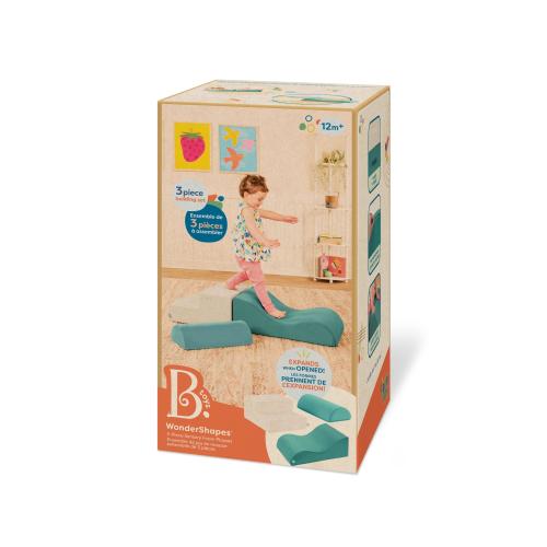 Стройте, играйте и се усмихвайте с мекото трио WonderShapes от Battat! Този комплект от 3 дунапренени форми включва едно плюшено стълбище, вълнообразна рампа и полуцилиндър за сглобяване и игра. Отворете ги и ги гледайте как порастват до пълния си размер - просто като по магия! Подредете ги и ги поставете, за да създадете писта с препятствия, или ги добавете към забавни крепости за безкрайни възможности! Докато децата пълзят и се катерят по супер меките форми, те ще развиват груби двигателни умения и това ги прави чудесен начин да останат активни на закрито. Калъфите, които могат да се перат в пералня, са лесни за сваляне и хвърляне в пералнята, за да се запазят свежи, а дръжките позволяват на децата лесно да пренаредят пространството си за игра по какъвто и да е начин, който пожелаят.