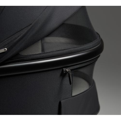 • Количката има усъвършенствана вентилационна система, която осигурява циркулация на въздуха на всички необходими места - от сеника и предната част на коша за новородено до поставката за крачета и сеника на седалката.