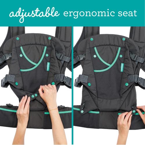 4 начина за носене: с лице навътре (седалка с намалена ширина), с лице навътре (разширена седалка), с лице навън и на раница