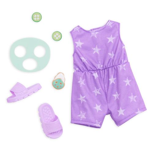 Всичко необходимо за спа забавление! Тази 46-сантиметрова кукла Серафина от Our Generation се предлага с аксесоари, готови за спа, като халат, маска за лице, кърпа, лента за глава и 2 резена краставица. Освен това, илюстрираната книжка позволява на малките читатели да вдъхнат живот на приключенията ѝ! Серафина е и позиционираща кукла. Децата могат да сгъват ръцете и краката ѝ, за да играят маникюр и педикюр с аксесоарите за ваничка за крака, нокторезачка, лак за нокти, ножица и пила за нокти. Тя има меко тяло, което може да се прегърне, дълга руса коса за оформяне и реалистични лешникови очи, които наистина се затварят! Серафина носи лилав пуловер със звезден принт с подходящи сандали. Когато е време за преобличане, тоалетът ѝ има лесни за отваряне за бързо обличане и събличане. Така че любителите на модата могат да смесват, съчетават и да изследват още сладки комбинации!