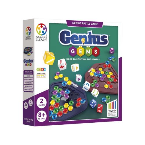 Играта „Гениални скъпоценни камъни“ предлага динамично стратегическо преживяване, което развива бързина, концентрация и гъвкаво мислене. Детето се състезава с опонент или играе самостоятелно, като се стреми да позиционира скъпоценните камъни по зададените критерии върху игралното табло. Петте нива на трудност и над 10 000 възможни комбинации осигуряват дълготрайно забавление и стимулират стратегическо планиране и пространствено мислене.