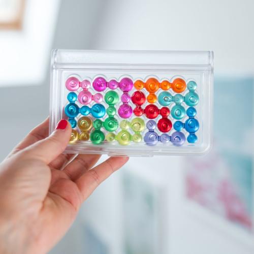 Играта „IQ Балончета“ предлага увлекателно логическо преживяване, което развива концентрация, логическо мислене и внимание към детайла. Детето трябва да подреди 11-те полупрозрачни пъзел части върху компактната игрална дъска, като всяко парче съдържа комбинация от големи и малки балончета, които пасват само на определени позиции. С 120 предизвикателства от начинаещо до експертно ниво, играта стимулира аналитичното мислене и умението за решаване на проблеми.