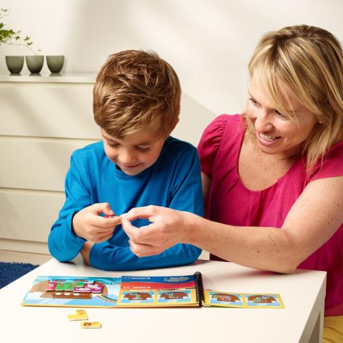 Комплектът е изработен от качествена пластмаса и картон с магнитни елементи, които осигуряват стабилност и безопасност при игра. Магнитната мрежа гарантира, че всички части остават на мястото си по време на подреждането.