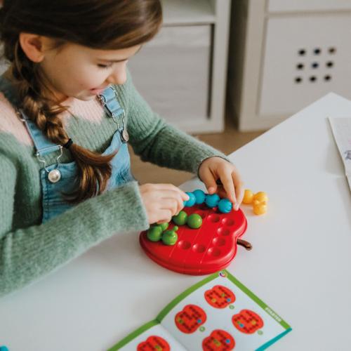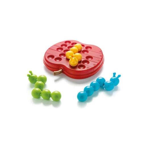 Детската логическа игра Smart Games, Врътни ябълката е забавно и образователно предизвикателство, в което три гладни гъсеници се опитват да споделят една единствена ябълка. Играчът трябва да огъне гъсениците така, че всяка от тях да се побере правилно в двустранната усукваща игрална дъска. Играта развива гъвкаво мислене, логика и пространствено възприятие, като предлага 60 предизвикателства с нарастваща трудност — от лесни до експертни.