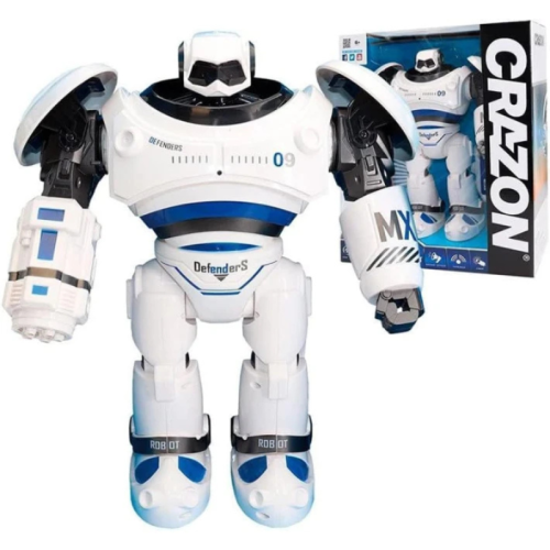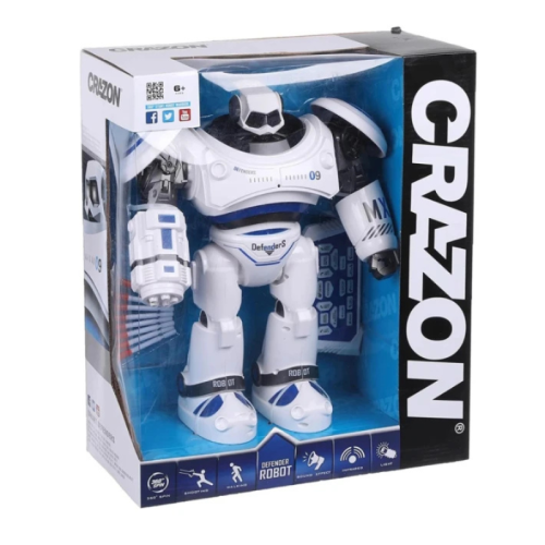 Интерактивният робот на Crazon е модерна и интелигентна играчка, създадена да въведе децата в света на технологиите чрез лесно инфрачервено управление и богата палитра от динамични светлинни и звукови ефекти. Той реагира на командите бързо и точно, като демонстрира различни типове движения – ходене, плъзгаща походка, завъртания и специални „бойни“ маневри. Това позволява на детето да създава разнообразни сценарии и да изследва различни видове управление.