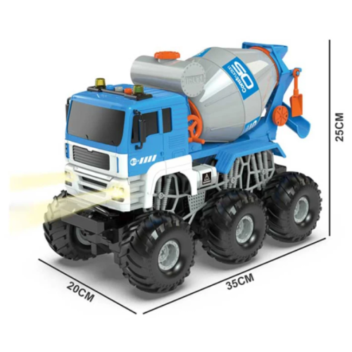 Звуковите ефекти, вдъхновени от истински строителни машини, правят играта по-ангажираща и помагат на децата да се потопят в реалистична атмосфера. LED светлините в предната част добавят ефектност и подобряват визуалното възприятие, особено по време на движение. Дистанционното управление с 2.4G технология осигурява стабилна връзка и позволява на детето да маневрира бетоновоза уверено и без прекъсване.
