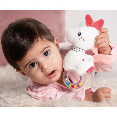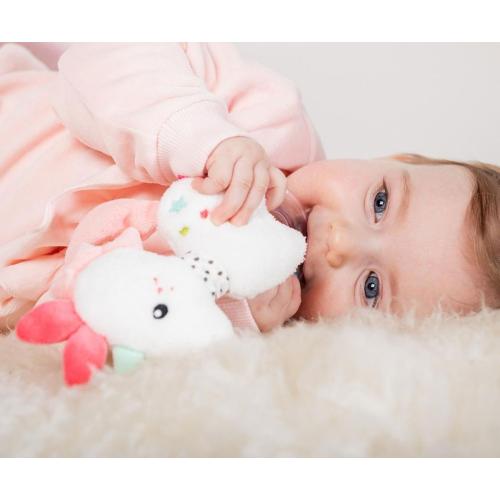 Меката дрънкалка еднорог babyFEHN Aiko & Yuki е нежен, забавен и стимулиращ спътник за всяко мъниче. Със своя мек допир, разнообразни звуци и удобен за хващане дизайн, тя насърчава играта и развитието още от първите дни. Компактна, безопасна и винаги под ръка — тази дрънкалка е чудесен избор както за домашна употреба, така и за подарък за новородено.