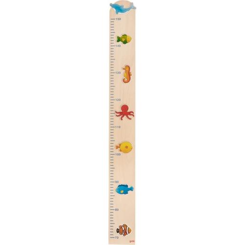 Дървеният детски метър с морски мотиви от Goki е чудесен начин да следите растежа на вашето дете по забавен и визуално привлекателен начин. Изработен е от висококачествено дърво и разполага с ясно обозначена измервателна скала от 80 до 150 cm.