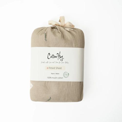 Чаршафът с ластик от Cotton Hug е изработен е от 100% памук муселин и е подходящ е за детско креватче с размери 60 х 120 cm и матраци с всякаква дебелина.