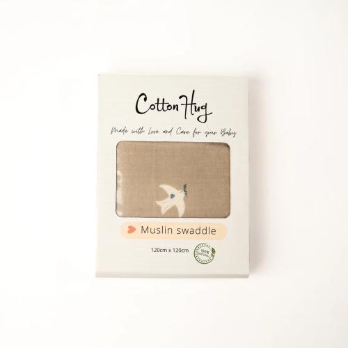 Бебешка памучна пелена Cotton Hug - Птички, 120 х 120 cm