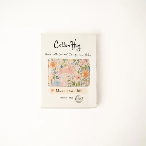 Бебешка памучна пелена Cotton Hug - Зайче, 120 х 120 cm