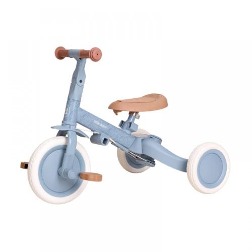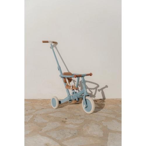 Функционална триколка с дръжка за бутане е снабдена с регулируеми седалка и кормило. Чрез сгъване на задните колела навътре, триколката може лесно да се превърне в балансиращ велосипед. Това прави прехода към велосипед с педали по-лесен. Ако детето е все още твърде малко, за да кара колело или да ходи, може да се вози и да бъде бутано с помощта на лоста за бутане. Детето е напълно обезопасено с колана и предпазния обръч, които се отстраняват много лесно. Педалите се сглобяват и могат удобно да се съхраняват под седлото. Както седлото, така и кормилото са регулируеми по височина. Кормилото има две позиции: най-ниската позиция на седлото е 32 см, а най-високата позиция е 35 см.