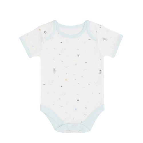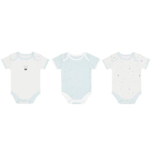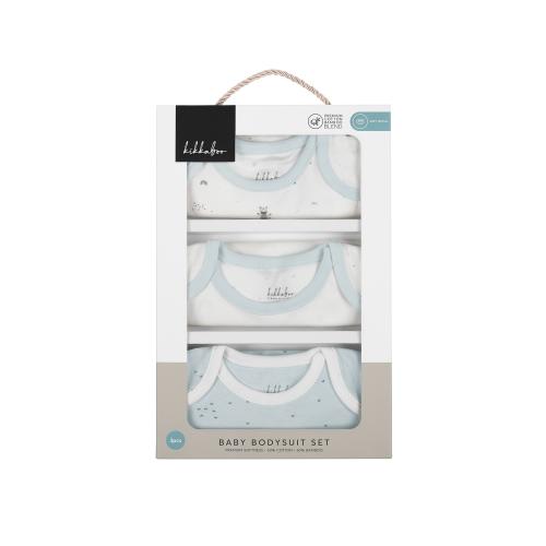 Комплект от 3 меки и нежни бодита за новородено, изработени от премиум интерлок трико, което съчетава 50% памук и 50% бамбук. Тази комбинация осигурява изключителна мекота и нежност към деликатната кожа на новороденото. Трите бодита са с дизайнерски принтове в нежни цветове, които допълват елегантния и модерен вид на комплекта.