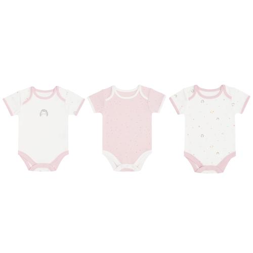 Комплект от 3 меки и нежни бодита за новородено, изработени от премиум интерлок трико, което съчетава 50% памук и 50% бамбук. Тази комбинация осигурява изключителна мекота и нежност към деликатната кожа на новороденото. Трите бодита са с дизайнерски принтове в нежни цветове, които допълват елегантния и модерен вид на комплекта.