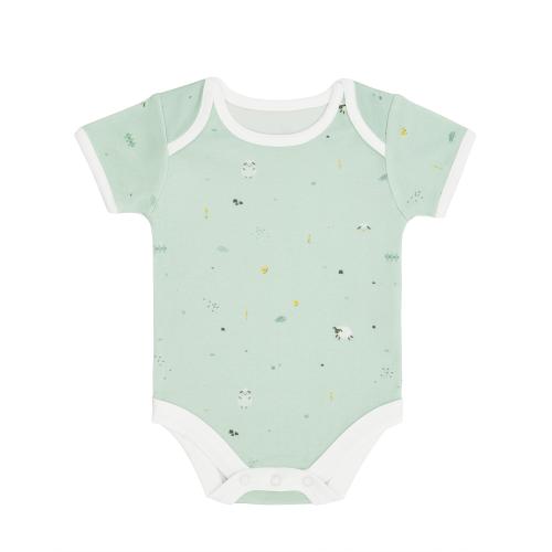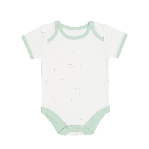 Комплект от 3 меки и нежни бодита за новородено, изработени от премиум интерлок трико, което съчетава 50% памук и 50% бамбук. Тази комбинация осигурява изключителна мекота и нежност към деликатната кожа на новороденото. Трите бодита са с дизайнерски принтове в нежни цветове, които допълват елегантния и модерен вид на комплекта.