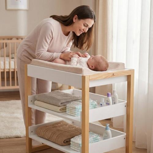 Маса за повиване Timber осигурява удобство и организация, така че всичко необходимо да бъде винаги под ръка по време на грижите за вашето бебе.
