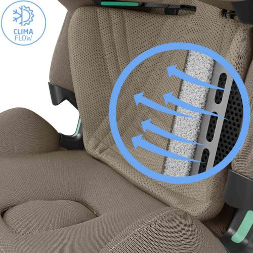 За да се гарантира, че детето ви ще се чувства комфортно дори при дълги пътувания, Pearl XL Slide Pro предлага пет различни позиции на накланяне. Системата ClimaFlow използва дишащи пяна и мрежести вложки, за да осигури оптимална циркулация на въздуха – като минимизира изпотяването през лятото. Калъфът, изработен от мека Eco Care тъкан, е произведен от 100% рециклирани PET бутилки, е особено нежен към кожата и е екологично чист.