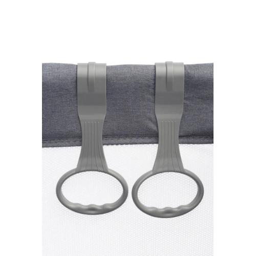Quadra е лека и практична квадратна кошара за игра, идеална за бебета и малки деца. Тя осигурява безопасно и удобно място за почивка и игра както у дома, така и по време на пътуване. Кошарата е оборудвана с мек матрак с цветен дизайн и дръжки, които подпомагат детето да се изправи. Включената транспортна чанта прави пренасянето лесно и удобно.