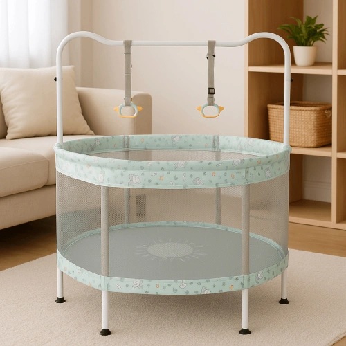 Подарете на вашето дете часове на активно забавление и физическа активност с този кръгъл детски батут 48 инча. Със своята обезопасителна мрежа, вградена дръжка за захващане, баскетболен кош и допълнителен ринг за игра, той е идеалното решение за игра на закрито или в градината.
