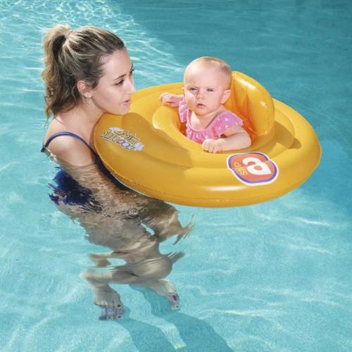 Бебешката седалка за плуване от Bestway е перфектна играчка за басейн, която помага на бебето да се научи да рита и плува, подобрява капацитета на белите дробове, стимулира костите, повишава имунитета и упражнява координацията.