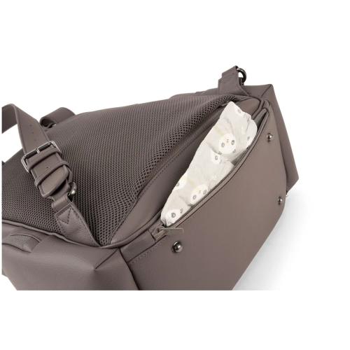 NUNA Essential Bag Thunder е многофункционална раница, която служи и като чанта за пелени, разполага с дизайн, който е подходящ за лаптоп, с външни и вътрешни джобове, удобна подложка за преобличане.