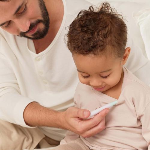 Този термометър с форма на биберон предлага лесен и познат начин за измерване на температурата на вашето бебе. Отчита се за 60 секунди, водоустойчив е и има индикатор за температура за удобно и безболезнено наблюдение.