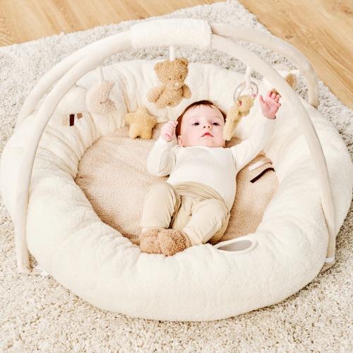 Активната гимнастика тип пуф с арки на Nattou предлага меко и уютно пространство, в което вашето бебе се чувства спокойно, защитено и щастливо. Благодарение на плътната подплата и високите ръбове, постелката осигурява комфорт и безопасност, докато мека плюшена арка с играчки, дрънкалки, огледалца и аксесоаринасърчава бебето да грабва, изследва и играе.