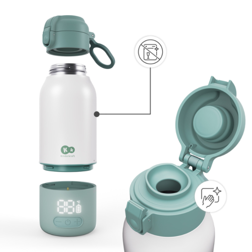 GAJA е мобилен нагревател за мляко и термос 2 в 1 с капацитет 500 мл, предназначен за родители на бебета. Той загрява течности до едно от 5 избираеми температурни нива само за 120 секунди, показва текущата температура и поддържа топлина до 20 часа. Свалящата се батерия улеснява почистването, а теглото му от 815 г осигурява мобилност. Подходящ за затопляне на мляко, вода, кафе и други течности.