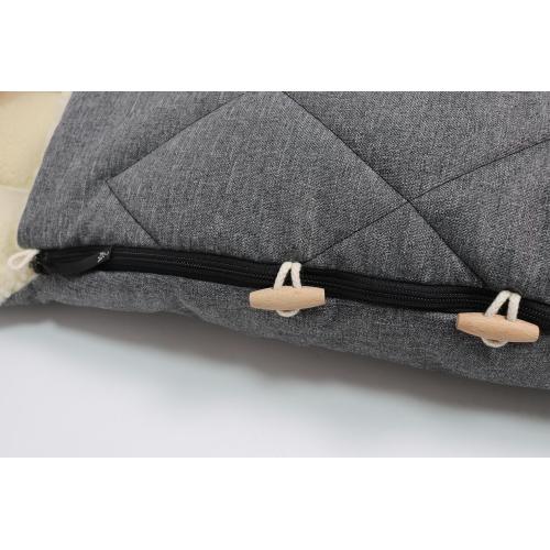 Външната материя на чувалчето е ветро- и водоустойчива, което предпазва от влага и студ. Вътрешната част е направена от 100% тъкана, мека овча вълна, която е щадяща към деликатната кожа на бебето и същевременно осигурява естествен терморегулаторен ефект. Овчата вълна топли през зимата и охлажда през лятото, абсорбира влагата и потиска неприятните миризми.