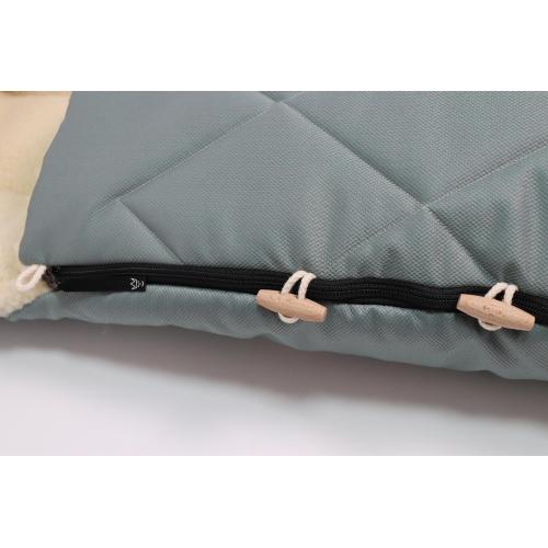Външната материя на чувалчето е ветро- и водоустойчива, което предпазва от влага и студ. Вътрешната част е направена от 100% тъкана, мека овча вълна, която е щадяща към деликатната кожа на бебето и същевременно осигурява естествен терморегулаторен ефект. Овчата вълна топли през зимата и охлажда през лятото, абсорбира влагата и потиска неприятните миризми.