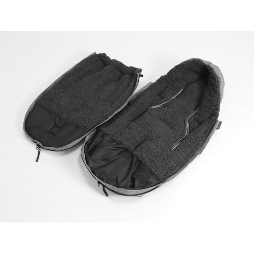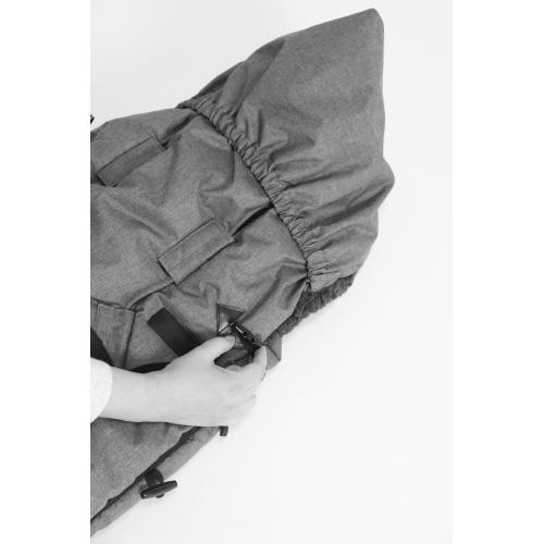 Чувалът разполага с 6 прореза за колани и велкро лепки, което го прави съвместим с повечето стандартни колички. Страничният цип улеснява поставянето и изваждането на детето, а долната част може да се махне изцяло при нужда – за повече гъвкавост и удобство.