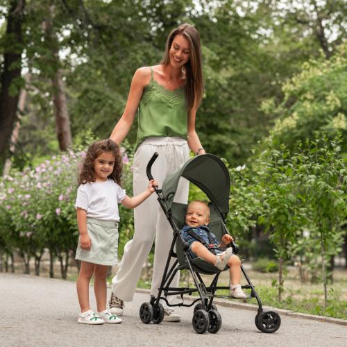 Подходяща е за деца от 6 месеца до 3 години с максимално тегло до 15 kg. Благодарение на леката конструкция и компактното сгъване, количката е лесна за пренасяне, съхранение и транспортиране – перфектен избор за активни родители.