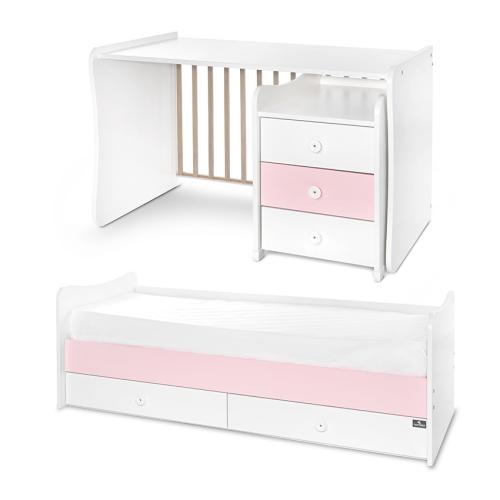 Трансформиращо се легло Lorelli - Maxi Plus, 70 х 160 cm, бяло/orchid pink