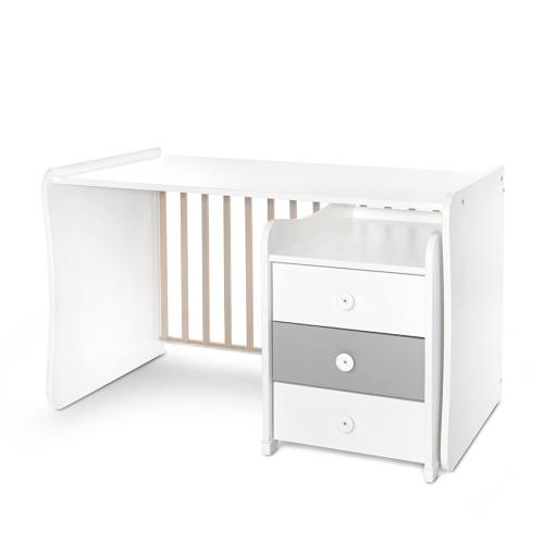 *Мултифункционален дизайн: Може да се използва като бебешка кошарка, люлка, шкаф с чекмеджета, юношеско легло и бюро.