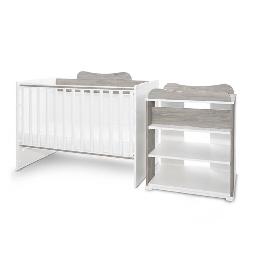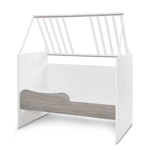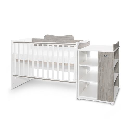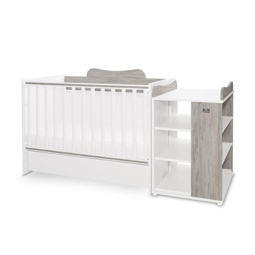 Леглото разполага с асансьорна решетка с две нива и автоматично заключване както в горна, така и в долна позиция. Подматрачната рамка също предлага две позиции на височина според възрастта на детето. В комплекта е включен и удобен плот за повиване, съвместим с мека подложка 50х70 см или твърда подложка 50х71 см. Конструкцията позволява сглобяване както в ляв, така и в десен вариант според нуждите на помещението.