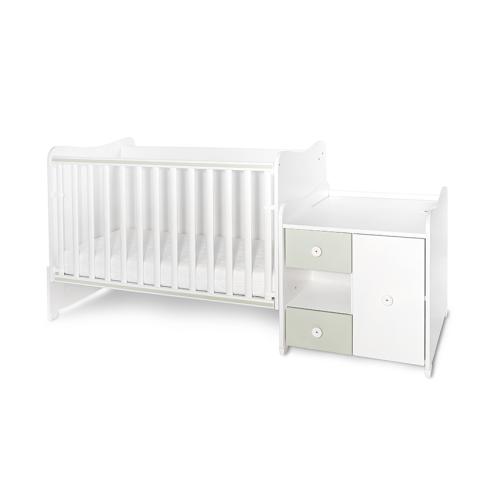Допълнително удобство представляват двете големи чекмеджета под леглото и многофункционалният шкаф с чекмеджета, които могат да съберат голямо количество дрехи и аксесоари. Плотът за повиване, който може да бъде монтиран отляво или отдясно, осигурява комфорт и практичност при ежедневните грижи за бебето и позволява извършване на масажи през първите месеци.