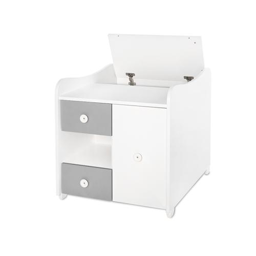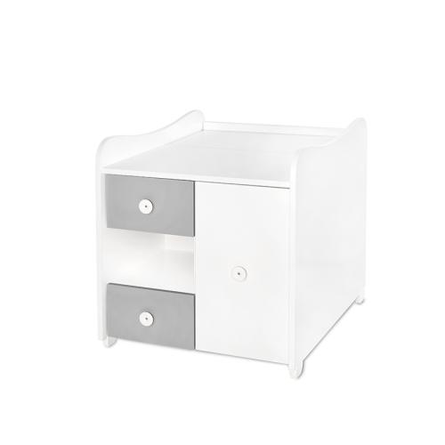 Допълнително удобство представляват двете големи чекмеджета под леглото и многофункционалният шкаф с чекмеджета, които могат да съберат голямо количество дрехи и аксесоари. Плотът за повиване, който може да бъде монтиран отляво или отдясно, осигурява комфорт и практичност при ежедневните грижи за бебето и позволява извършване на масажи през първите месеци.