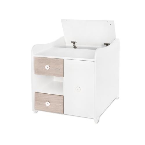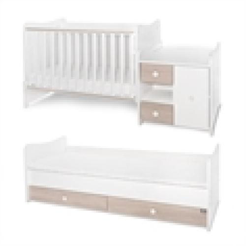 Допълнително удобство представляват двете големи чекмеджета под леглото и многофункционалният шкаф с чекмеджета, които могат да съберат голямо количество дрехи и аксесоари. Плотът за повиване, който може да бъде монтиран отляво или отдясно, осигурява комфорт и практичност при ежедневните грижи за бебето и позволява извършване на масажи през първите месеци.