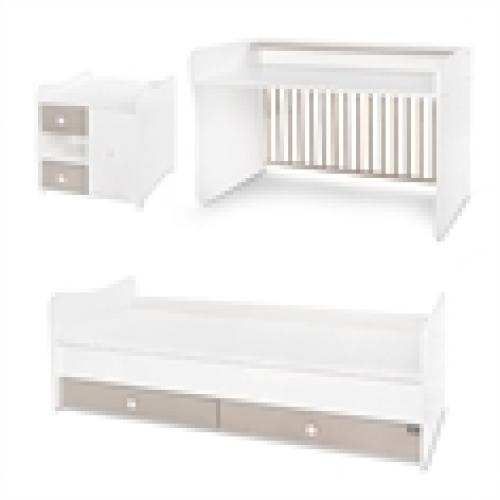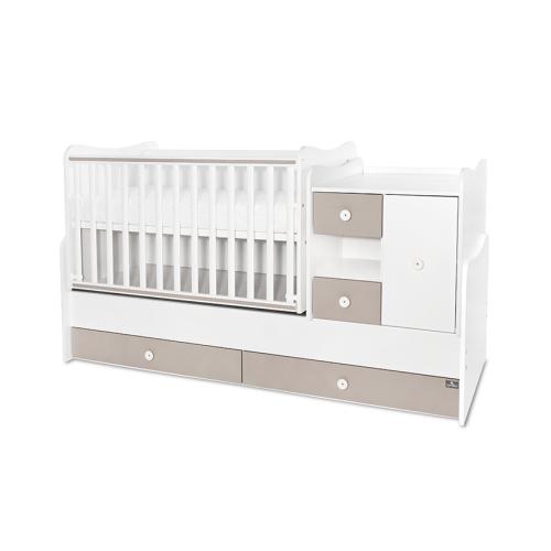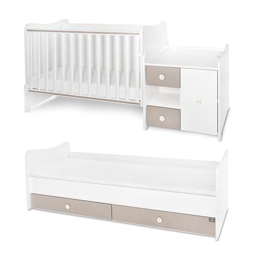 Допълнително удобство представляват двете големи чекмеджета под леглото и многофункционалният шкаф с чекмеджета, които могат да съберат голямо количество дрехи и аксесоари. Плотът за повиване, който може да бъде монтиран отляво или отдясно, осигурява комфорт и практичност при ежедневните грижи за бебето и позволява извършване на масажи през първите месеци.